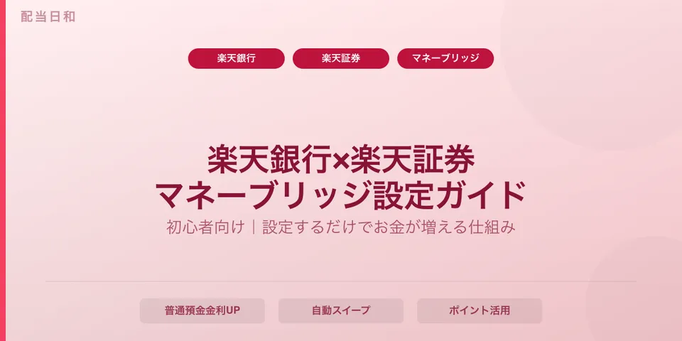 マネーブリッジを設定すると普通預金金利が年0.1%に。楽天銀行と楽天証券の連携メリット・注意点・実際の使い方をわかりやすく解説します。