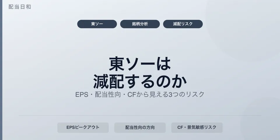 一見安定した増配銘柄に見える東ソー。でもEPS・配当性向・キャッシュフローを丁寧に見ると、気になるシグナルが積み重なっています。保有者として正直に分析します。